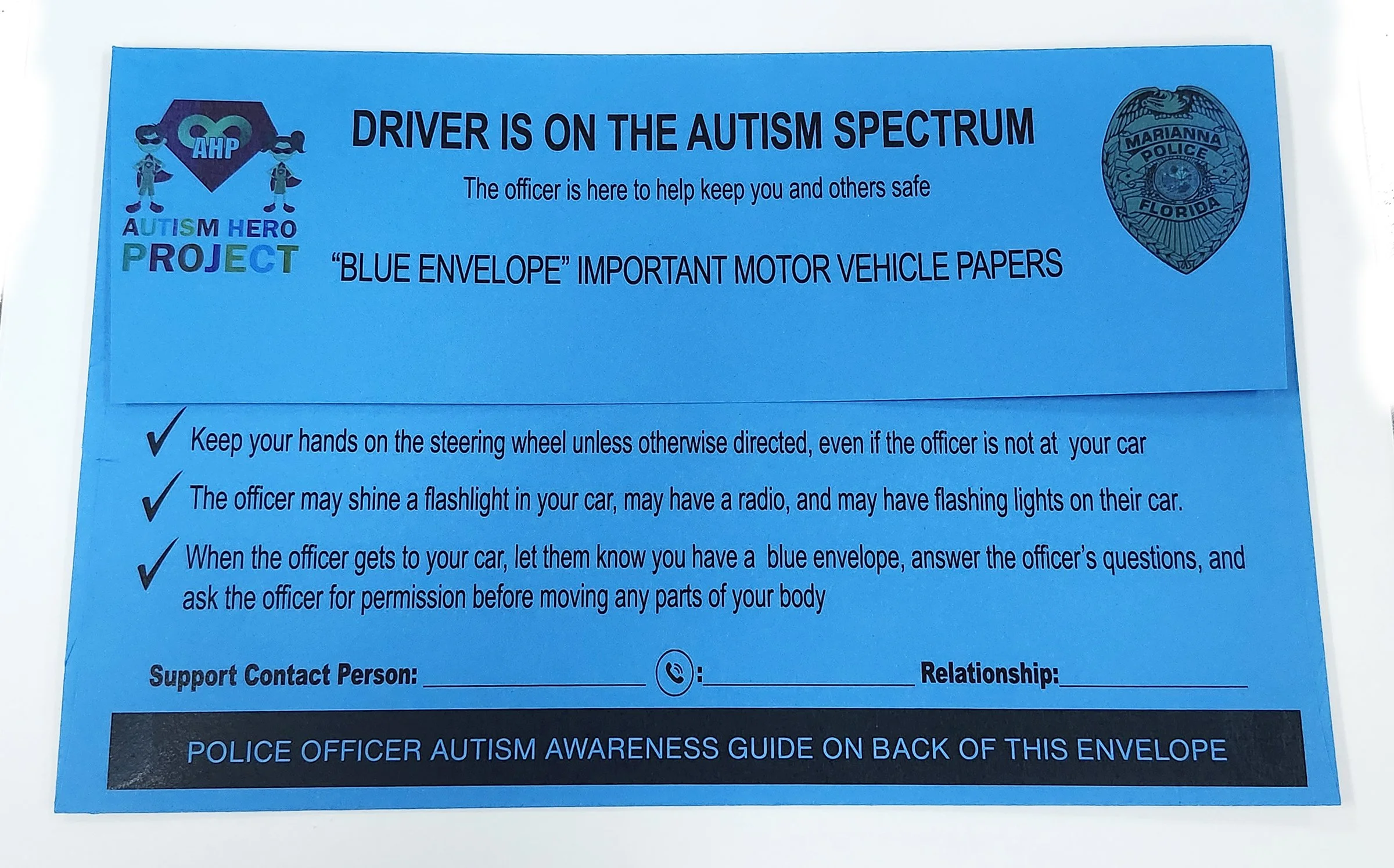The Marianna Police Department is partnering with the Autism Hero Project to bring the Blue Envelope Program to the community, an initiative designed to make interactions between law enforcement and individuals with autism safer, clearer, and less stressful.