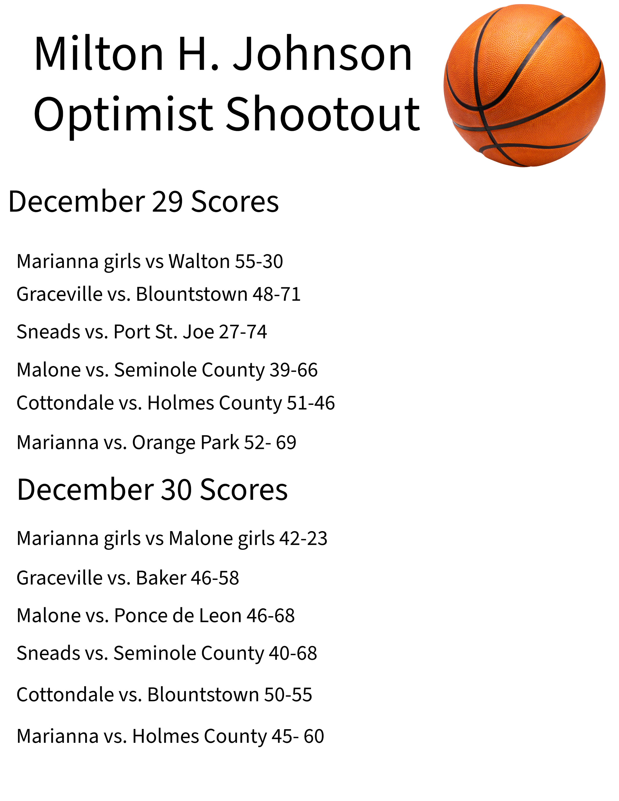 Milton H. Johnson Optimist Shootout Sports Dec 31 Written By mark skinner basketballmiddle and high sportsSneadsMaloneGracevilleCottondaleMarianna mark skinner