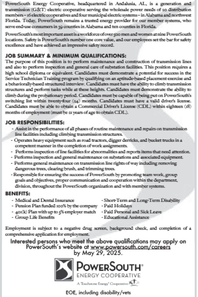 Job Opening: District Line Technician (Chipley) Local Jobs May 27 Written By Leigh Barnes Leigh Barnes